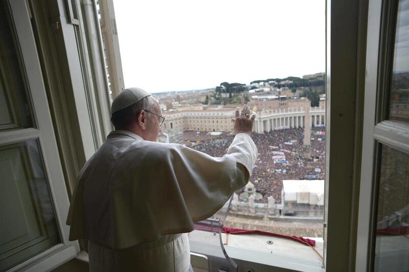 Francis started speaking at the window even before the stroke of noon — the appointed time for the weekly papal address — when the window of the papal study in the Apostolic Palace is usually flung open. The shutters were opened for the first time since Francis' predecessor, Benedict XVI, gave his last Sunday blessing on Feb. 24. Four days later, Benedict went into retirement, the first pontiff to do so in nearly 600 years.