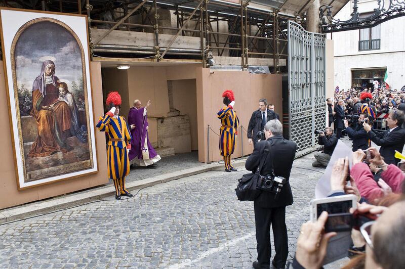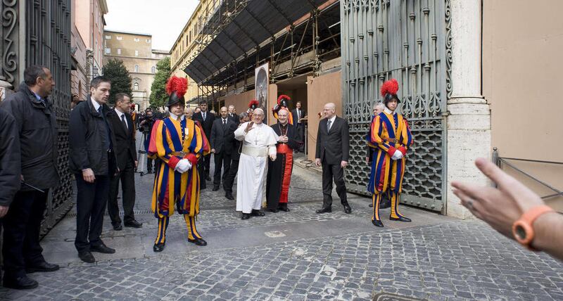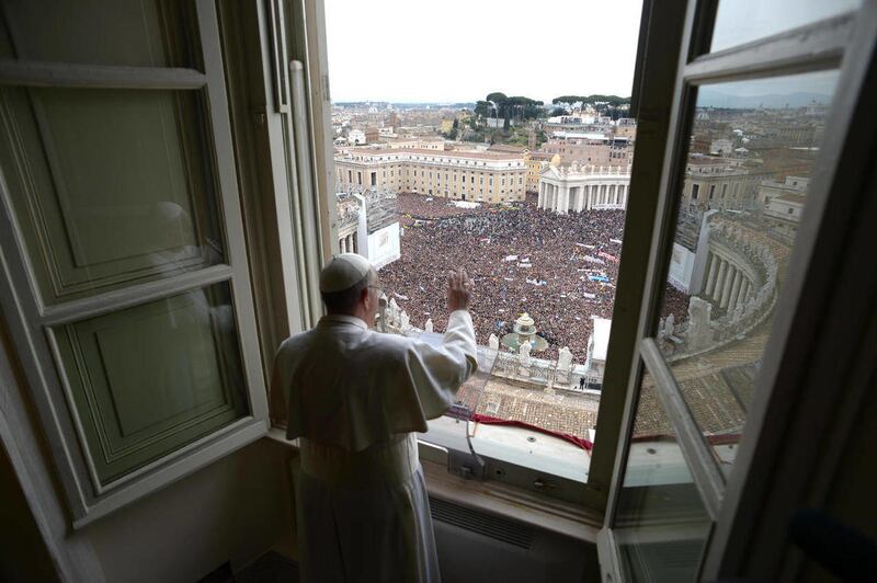 The pope then ducked back inside the Vatican's boundaries to dash upstairs for the address to St. Peter's Square.