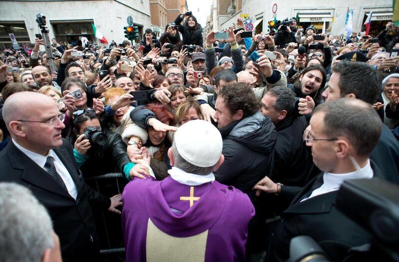 After Mass, Francis again put his security detail to the test as he waded into an intersection just outside St. Anna's Gate. Francis stepped up to the crowd, grasping outstretched hands. The atmosphere was so casual that several people even gripped Francis on the shoulder.