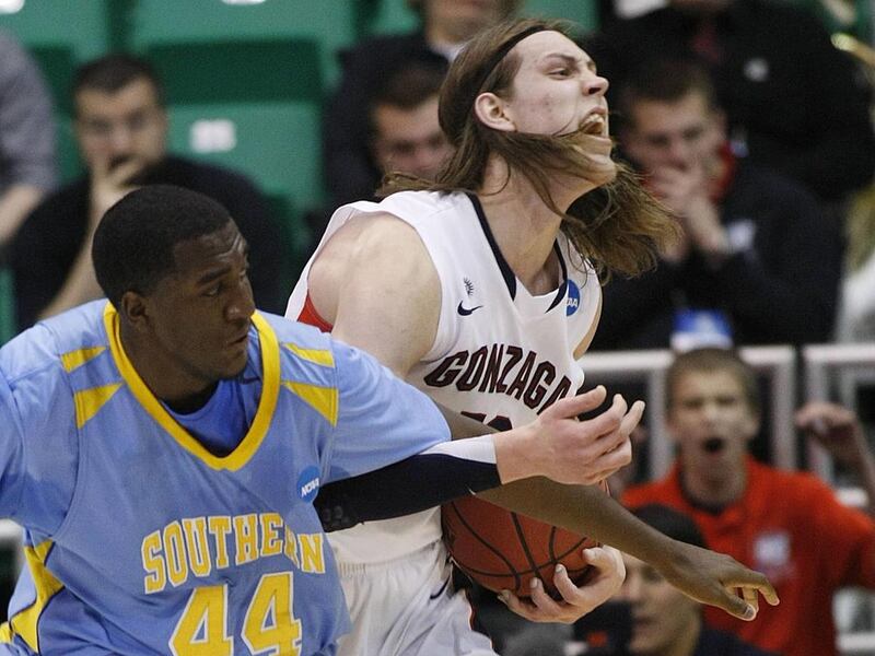 Gonzaga escaped past the second round of the NCAA tournament, thanks to a spectacular second-half performance from 7-foot Canadian center Kelly Olynyk and clutch shooting by guard Kevin Pangos with a 64-58 victory over Southern. Olynyk scored 17 of his team-high 21 points in the second half and had 10 rebounds to lift the Zags to a third-round matchup against Wichita State on Saturday.