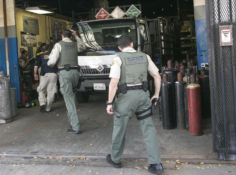 LOS ANGELES — Hundreds of law enforcement officers on Friday raided Southern California auto parts shops and other businesses suspected of illegally selling nitrous oxide for use as a recreational drug, in what federal authorities said was the nation's largest such raid ever.
