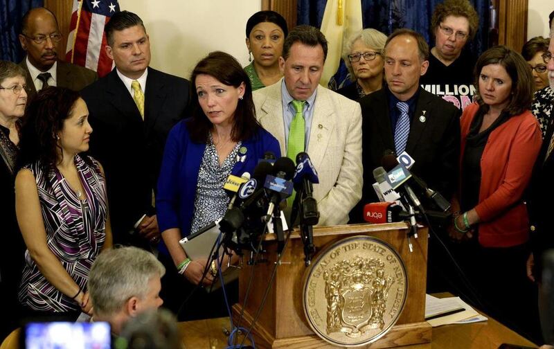 Nelba Marquez-Greene, whose daughter, Ana, was among those killed at Sandy Hook Elementary School in Newtown, reminded lawmakers that 11 children were able to escape as shooter Adam Lanza reloaded. Assembly Majority Leader Lou Greenwald noted the 13th bullet in a magazine killed Christina-Taylor Green, the 9-year-old who died in the Tuscon, Ariz., shooting that wounded U.S. Rep. Gabby Giffords.