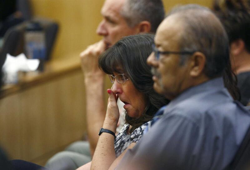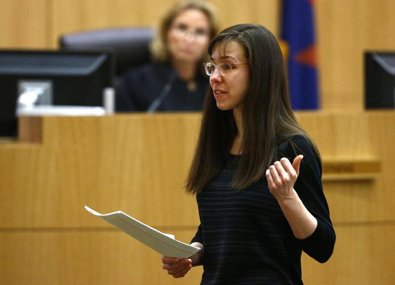 The jury paid close attention to Arias as she spoke, their gaze turning to the large screen behind her as she ticked through family photos and explained the stories behind each image. Arias retained her composure throughout much of her statement, pausing occasionally as she apparently cried, but no tears were visible.