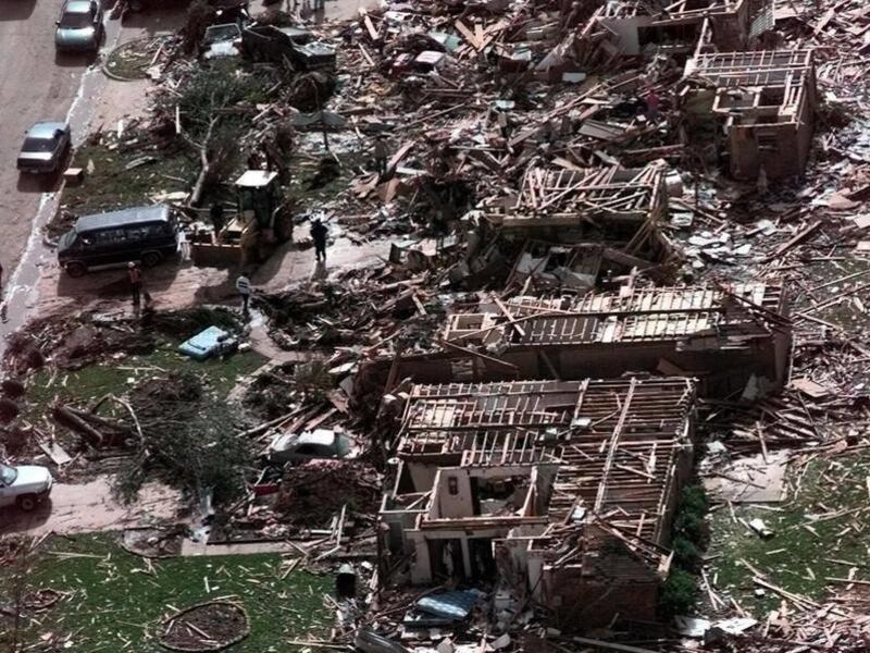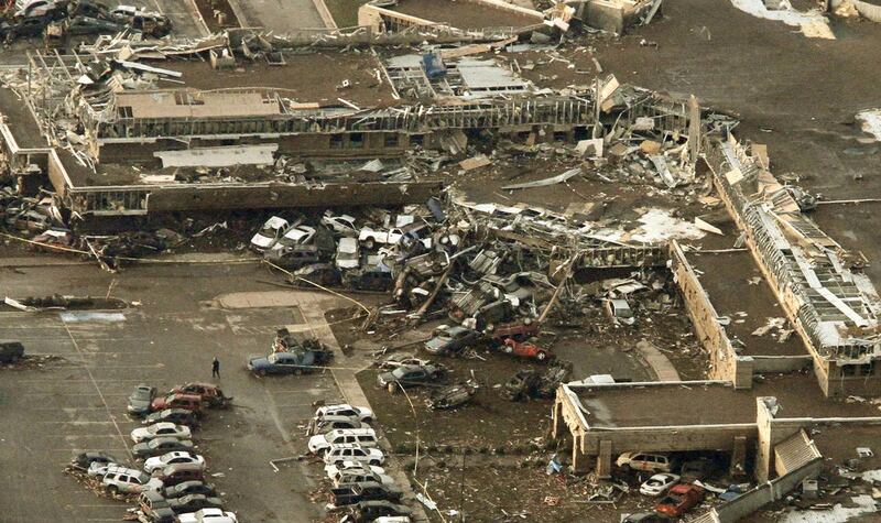 They didn't know it yet, but the tornado raging around them was an EF5 — the highest ranking on the scale. More than a mile across, it would carve a path of destruction nearly 17 miles long and leave 24 dead in its wake.