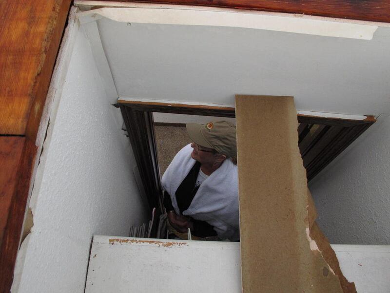 The three retreated to a designated safe room — a tiny linen closet at the center of the brick house.