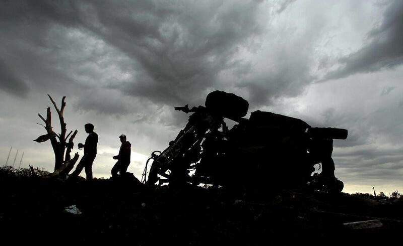 As the neighbors picked over the storm's leavings Tuesday, rain pelted down and the sky crackled with lightning. Uniformed National Guard members stood watch at the intersection, keeping all but residents out.