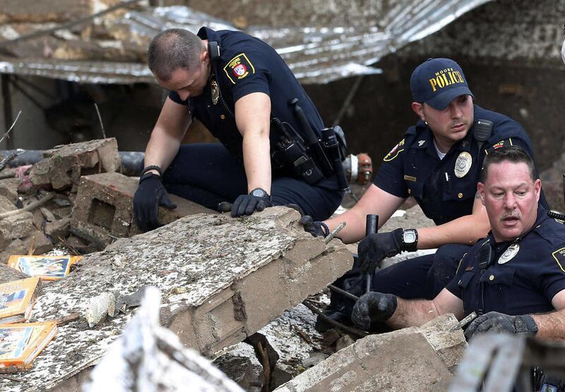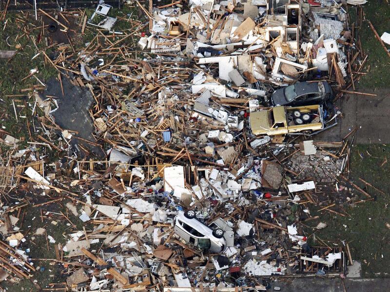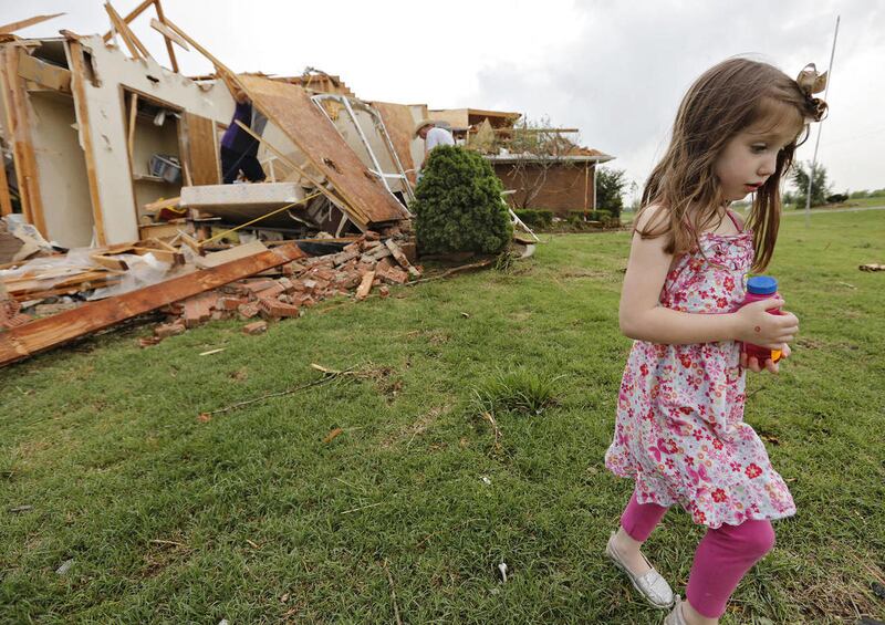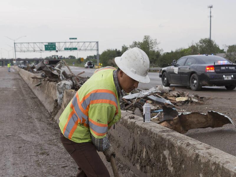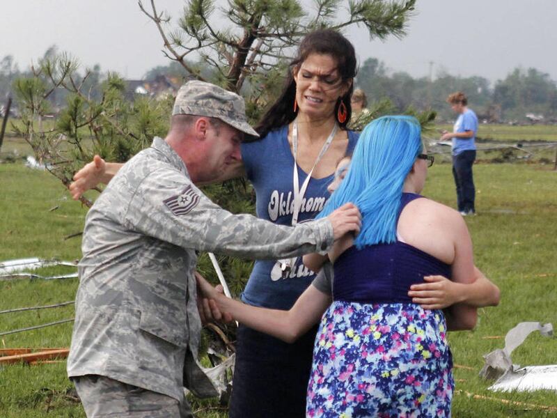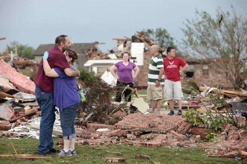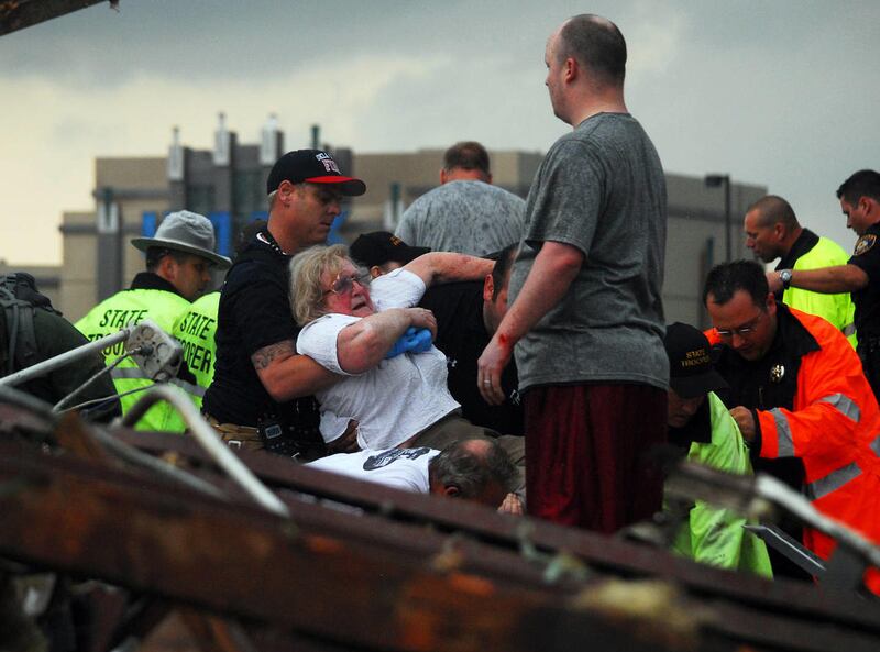 She was talking on the phone with Darrin, who was up in Norman inspecting some jobs, when she heard the announcer on his truck radio say the storm was at 149th and Pennsylvania Avenue — just up the street. She looked up and saw a wall of debris.