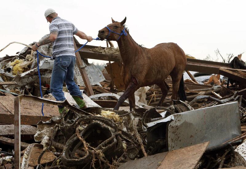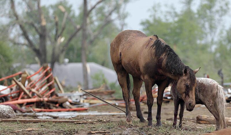 The storm had torn off part of Jann's roof and pushed a box truck 50 feet across the yard. The horse barn was demolished, but the three animals inside survived largely unscathed.