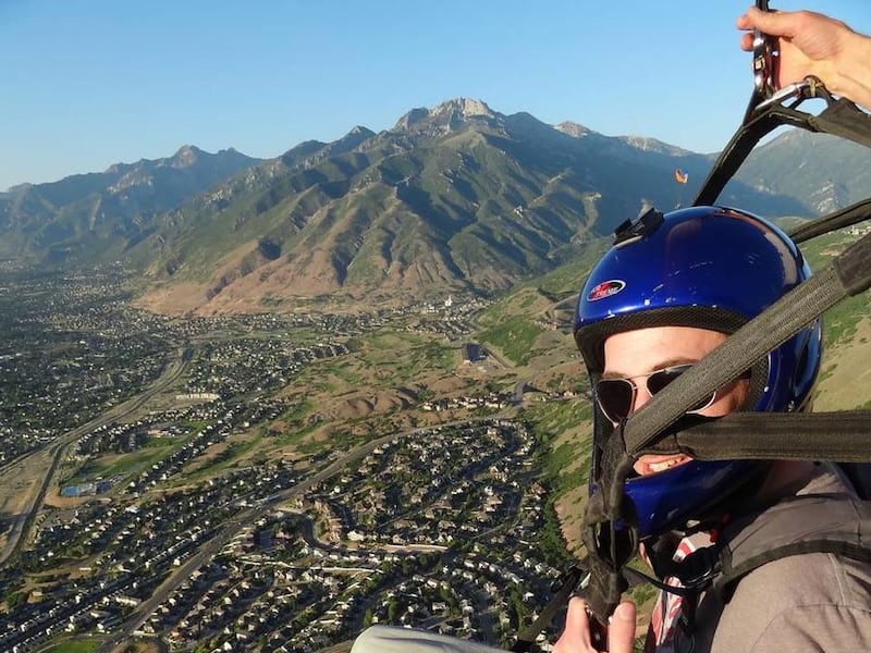 The first few times this happens to you, it’s natural to get a little freaked out as you watch the Salt Lake Valley diminish below you to the size of a Monopoly board. A normal thought to enter you mind is, “What if my wing fails right now?” No problem. This happens, but it's rare. Most serious paragliders carry a reserve chute on them. Problem solved.