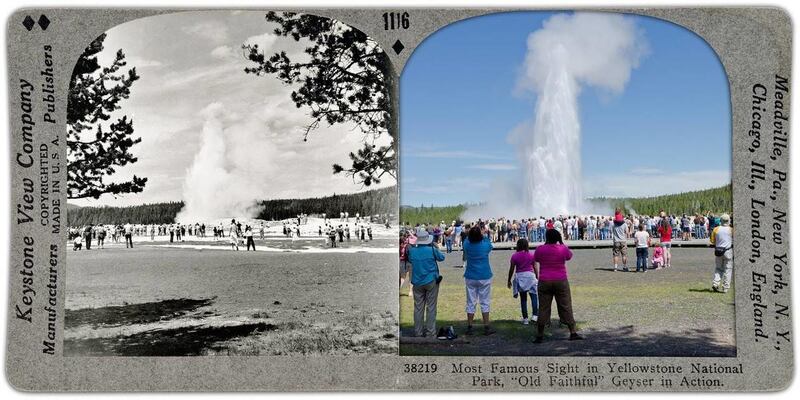 Horsted set out to research old photographs of Yellowstone and then tried to re-create the shots as closely as possible. He found ample help from Berry, who owns one of the foremost collections of historical Yellowstone photographs taken between 1871 and 1930. Berry is also a long-time park guide and helped Horsted find many of the places shown in the earlier photos.