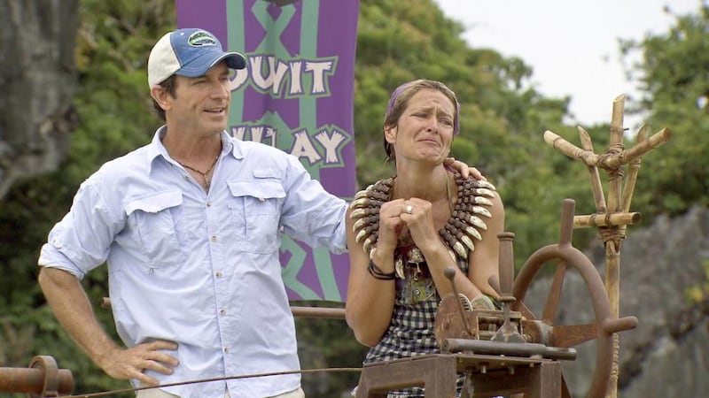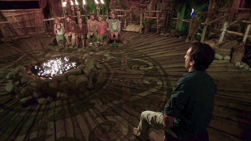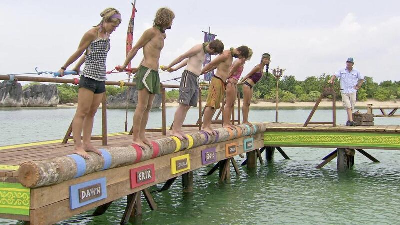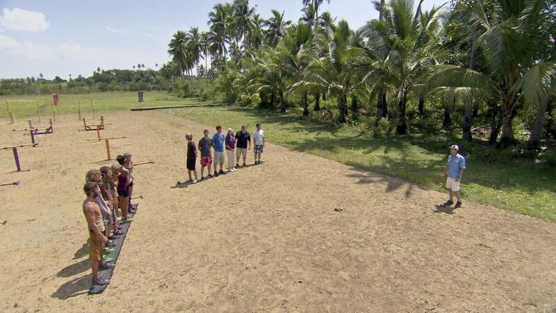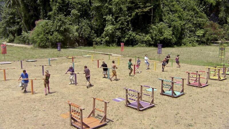 On Day 36, the Immunity Challenge included standing on a ledge over and holding onto a handle attached to a wench. Every five minutes, Probst would let more out, lowering them closer to the water.