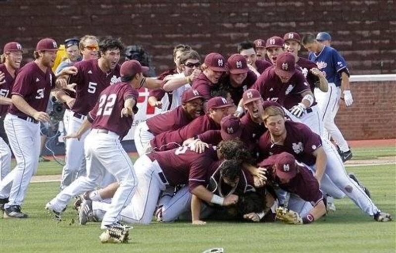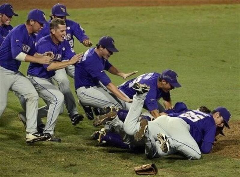 Then the pile-up occurs, transforming the mound from desolate island to midfield party. In the NCAA baseball playoffs, staying alive gives new life in return, and every game gives the winning team an excuse to execute the movie-worthy scene. It's a cycle that continues as long as you're winning, at least enough to move on to the next round.