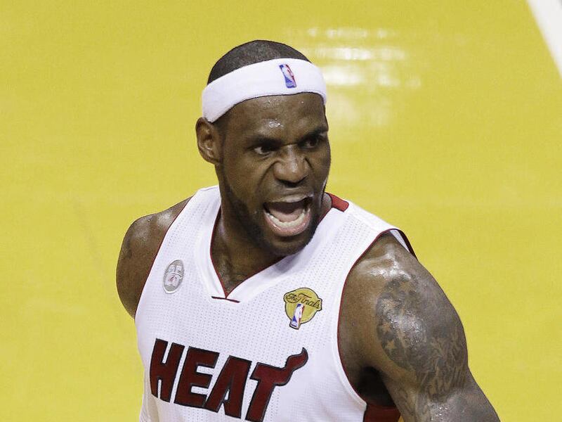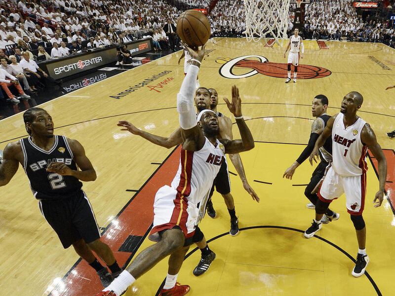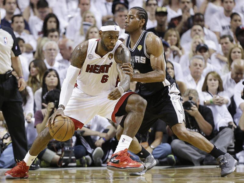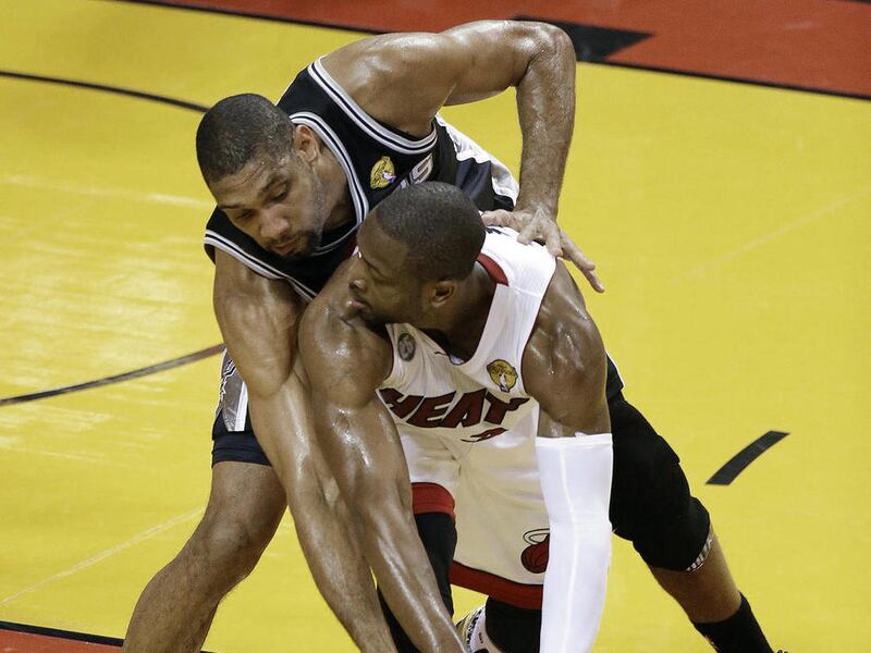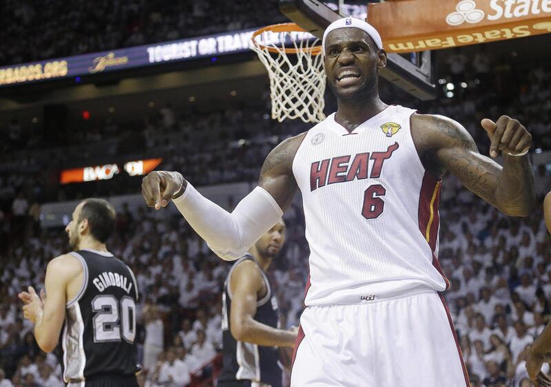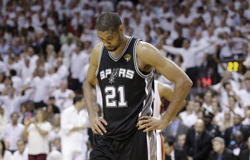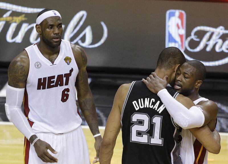 Finally, we wanted James to be the best against the best. Tim Duncan, a four-time NBA champion and arguably the best power forward of all time, ended up leaving LeBron's court with a piece of Heat celebration confetti stuck to his bowed, defeated head.