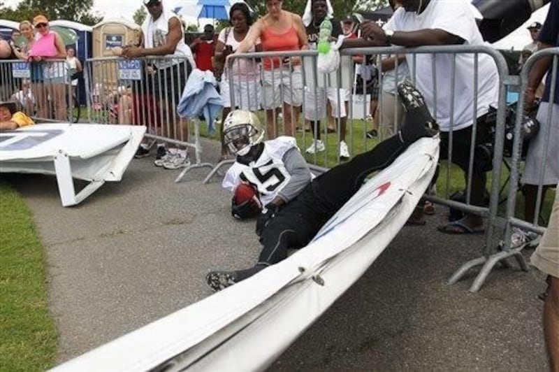 — Finally, summer's just getting started, but that didn't stop Saints wide receiver Courtney Roby from playing like it's December. Training camp? Maybe for the team trainers, who surely checked in on Roby after his full-on collision with a field barrier after snagging a pass on the run.