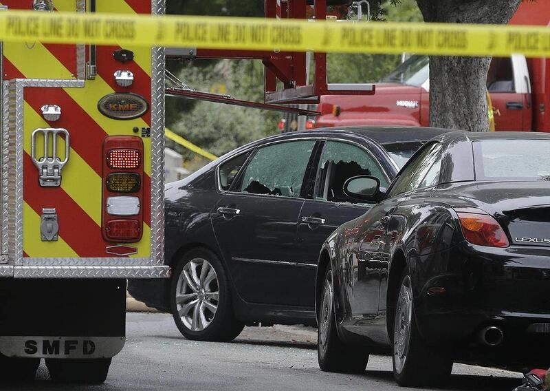 Police and witnesses said the chaos began shortly before noon when a man dressed in black opened fire on a house in this normally idyllic coastal community, then fired on a car and wounded the driver before taking off in another car.