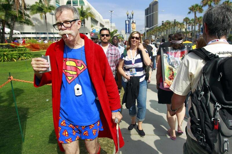 At Comic-Con International, Superman's presence could be seen everywhere — from attendees wearing various incarnations of his many costumes to scenes from the television serials, cartoons, films, and even in comic books.