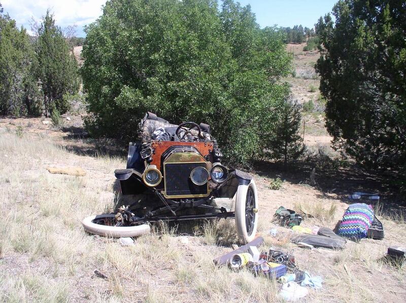 As the 19-year-old driver tried to get the old vehicle back onto the pavement, investigators believe he didn't negotiate the small dirt slope properly, and the added weight and stress on the tires caused the wooden spokes on the right front wheel to collapse, causing the vehicle to overturn.