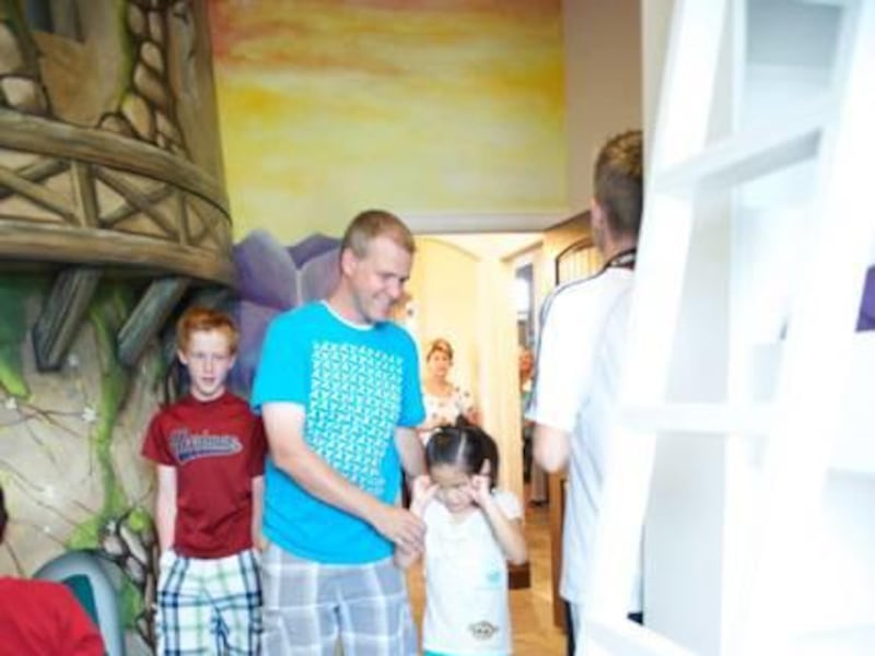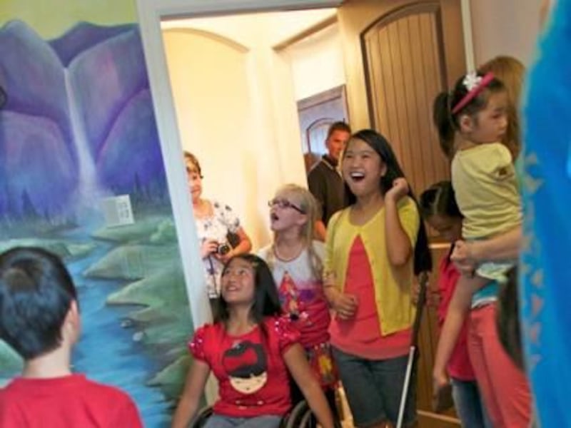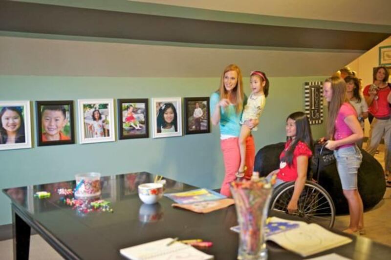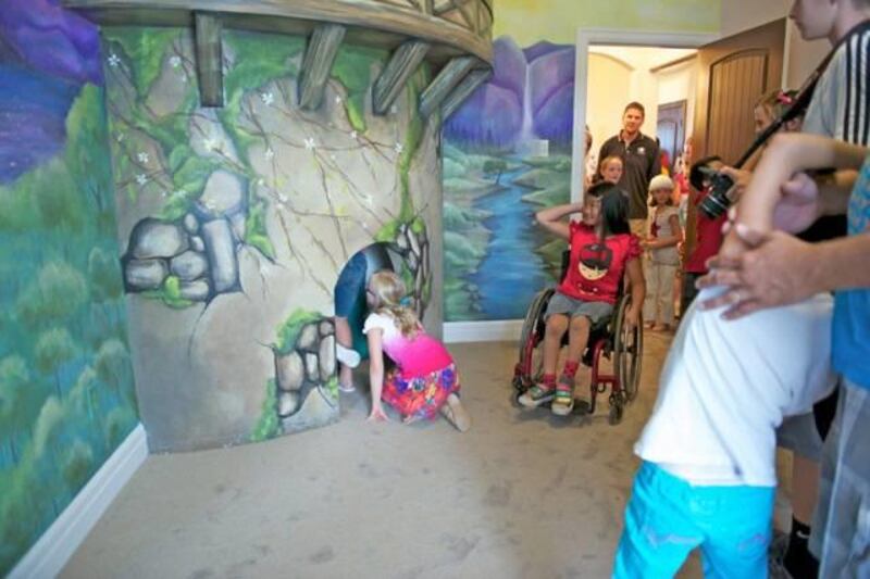 The house was built to accommodate the various special needs of each child, including wheelchair accessible spaces and an elevator for Cali, a special room for Elli where she can balance and climb without endangering herself; and a special kitchen sink located 18 inches off the floor for Sophi to wash her feet before dinner.