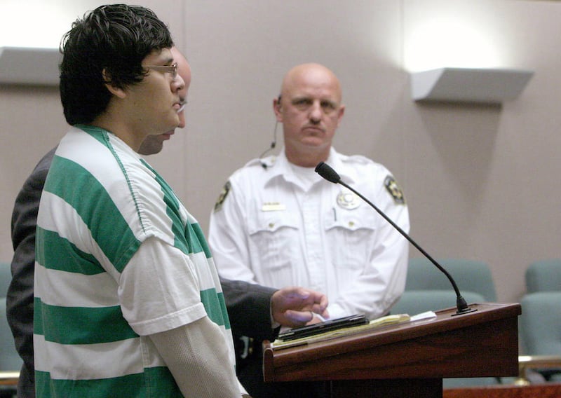 Saenz, whose only statement to the court was a soft-spoken "I'm sorry," was led quietly from the courtroom by a pair of bailiffs, his head still down. He's scheduled to be back before McClellan for a pretrial conference in the murder case on Sept. 10.