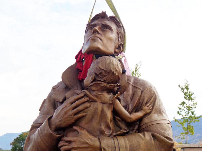 The statue, sculpted by Angela Johnson, will be revealed at the sunrise service Wednesday morning. Lt. Gov. Greg Bell and Rep. Rob Bishop, R-Utah will speak at the event at the USU Botanical Center, 920 S. 50 W., Kaysville. The memorial is west of the center's pavilion near the ponds.