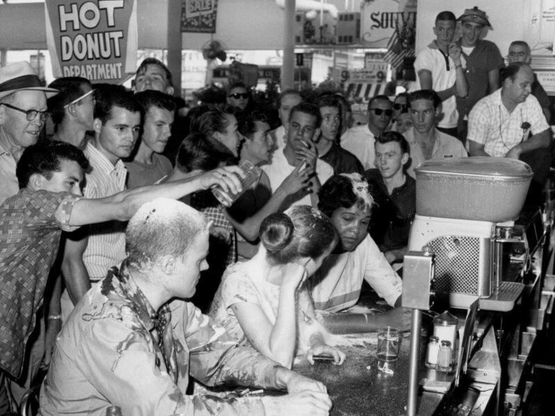 During the infamous sit-in at the Woolworth lunch counter in Greensboro, N.C., in 1963, she and other activists endured the taunting of the crowd, which swelled in intensity and began dumping ice cream and other condiments onto the protesters.