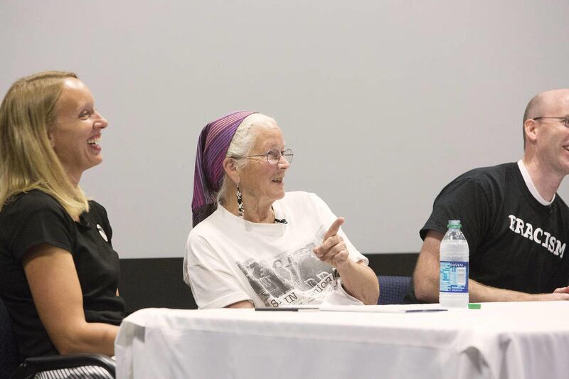 "Now us old folks are getting a little weak in the knees and maybe in the brain, so it's time for you young folks to step forward and carry it on," Joan told the students in attendance at the panel.