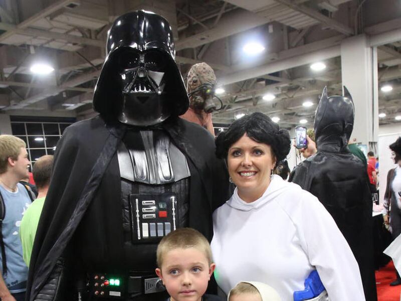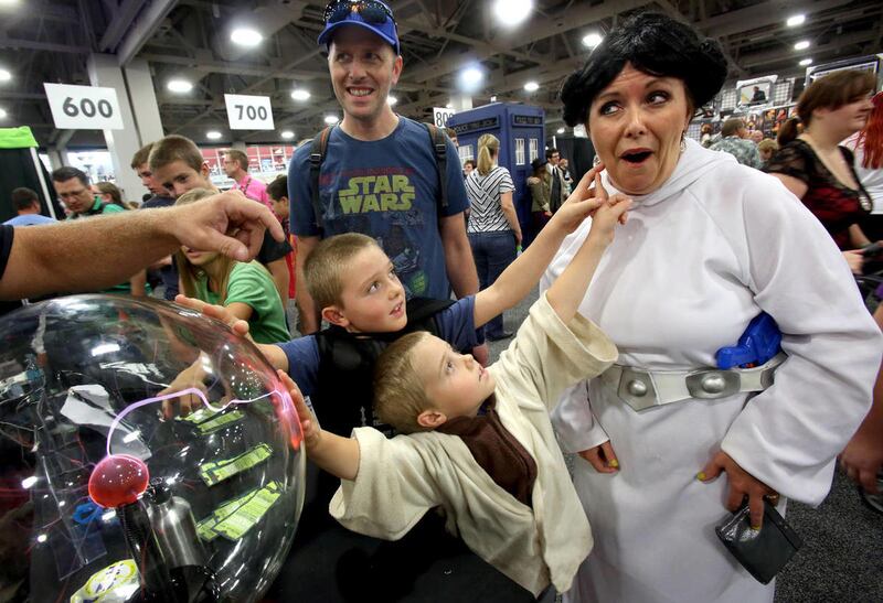 For three days, couples dressed as Han Solo and Princess Leia paraded through the Salt Palace holding hands; parents came as villains, while their children played the roles of superheroes; mothers pushed strollers disguised as spacecrafts; and fathers in capes carried toddlers on their shoulders.