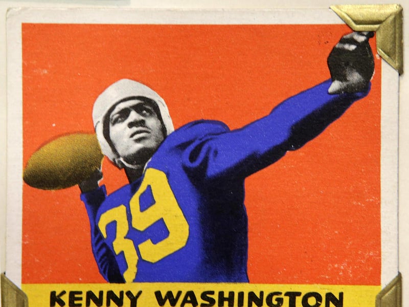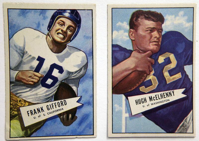Other notable players include Kenneth Washington, the first black player in the NFL who broke the color barrier, and Hall of Famer Sid Luckman, one of the first Jewish players in professional football. There's also a 1952 rookie card of Frank Gifford, who was the New York Giants' No. 1 draft pick.