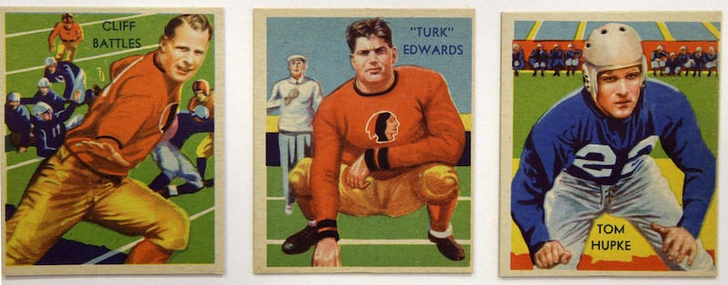 The cards — which feature football greats, lesser-known collegiate players, owners and teams — were inserted into such products as candy, gum and tobacco.