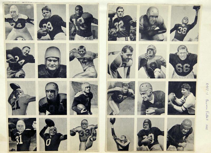 There's also a 1936 Chicle luxury set of black and white photos that includes University of Illinois running back Harold "Red" Grange, who went on to play with the Chicago Bears and whose speed earned him the moniker "The Galloping Ghost."