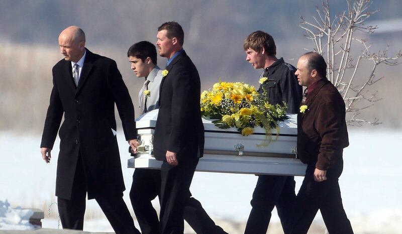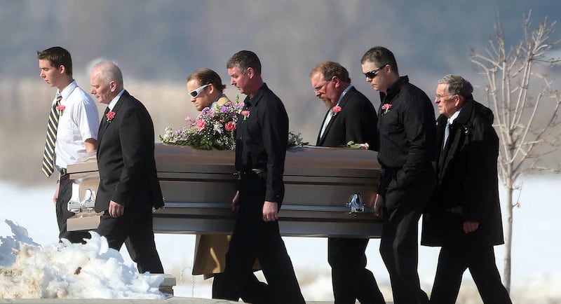 After the service, the congregation made the short walk from the mortuary to the Lindquist Cemetery outside where the interment for all four of the victims was held.