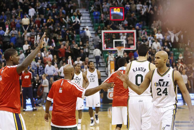 Richard Jefferson and Marvin Williams walked out side-by-side, slapping hands and smiling. Enes Kanter pulled streamers off his shoulders and draped them on Jeremy Evans.