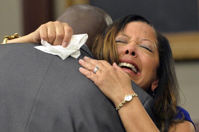 After Healey imposed the sentence and adjourned, Davis' family and supporters continued sitting, talking to each other and hugging for about 15 minutes. They left with visible signs of relief on their tear-streaked faces.