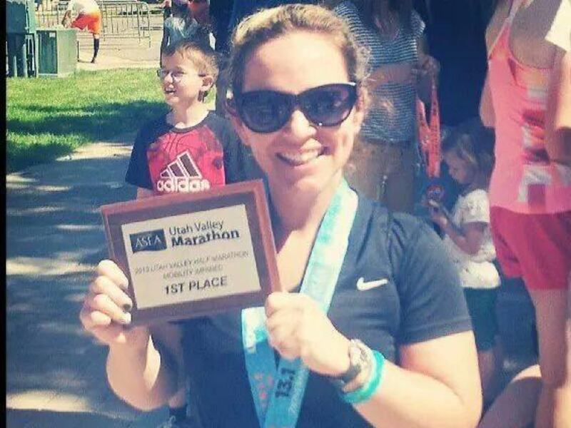 In June 2013, she ran the Utah Valley half marathon, earning first place in the mobility-impaired category.