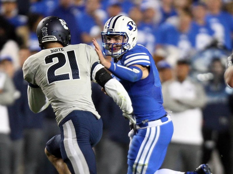 USU quarterback Darell Garretson, who replaced Chuckie Keeton — likely out for the season with a knee injury suffered a few weeks ago — torched the Cougar secondary through the air, completing 19 of 25 passes for 321 yards and three touchdowns.