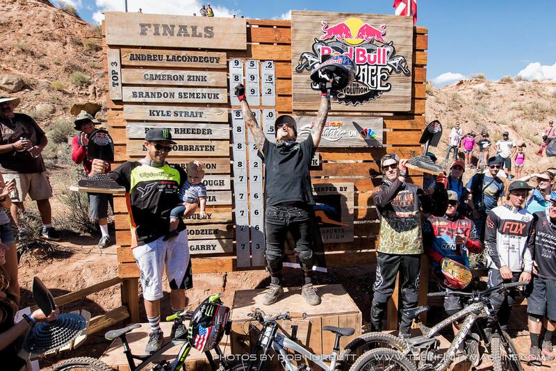 Heavy rains changed the schedule of the event, as the finals were shifted to Sept. 29. By competition's end, the three riders on the podium were Andreu Lacondeguy (first place), Cam Zink (second) and Brandon Semenuk (third).