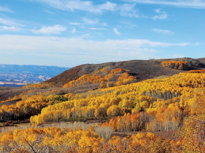 The October photo of Boulder Mountain was taken by graphic designer Elizabeth Firmage while she was driving along the state Route 12 Scenic Byway in Garfield County.