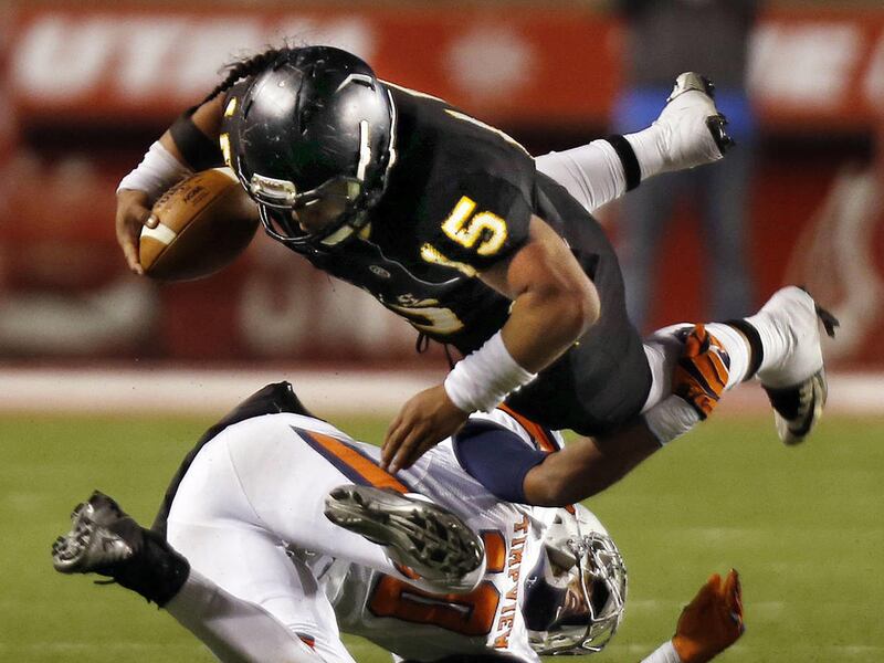 “At halftime we said, ‘We’re the best team in the state when we work together.’ Our motto at Timpview is trust yourself, trust your team and trust your coaches, and I think that’s what changed in the second half; we started trusting each other and we realized when we work together we’re unbeatable,” said Timpview quarterback Britain Covey.