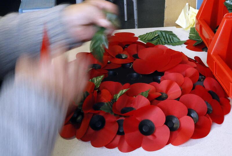 To this day, the factory in west London's Richmond makes the bulk of the 45 million poppies, wreaths and crosses sold across Britain. Full-time workers like Sellick assemble each by hand year round, though most of the poppies don't appear until late October, when they adorn war memorials up and down the country and are sold on virtually every street corner.