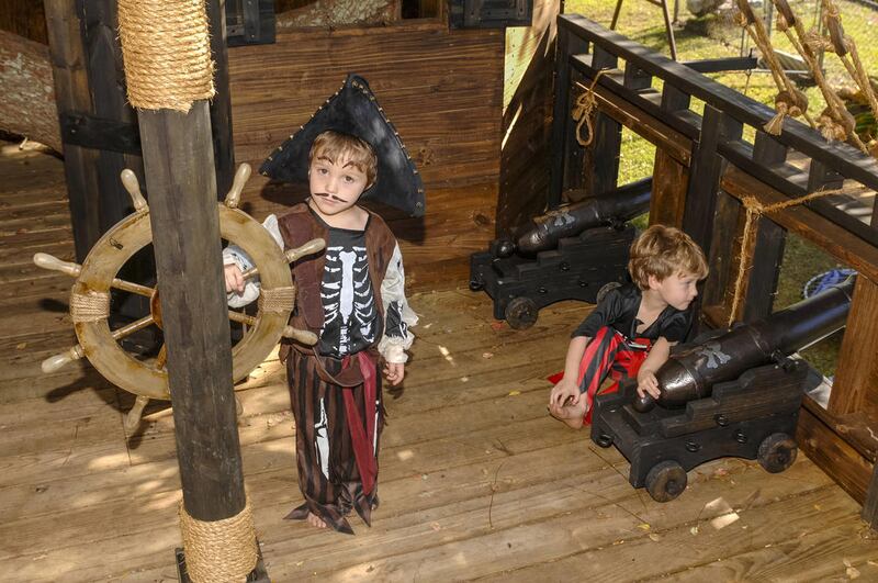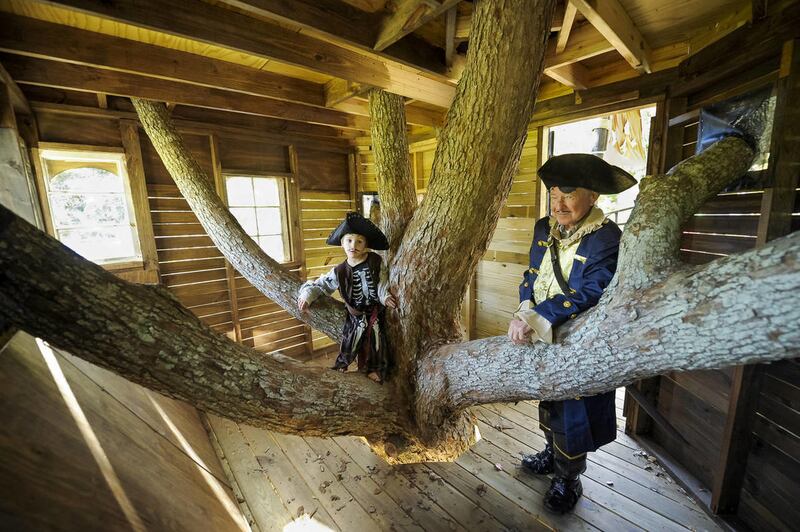 JEANERETTE, La. — Next-door neighbors built a pirate ship treehouse, complete with crow's-nest, cannons, anchor and enemies' skulls, for 5-year-old twins Charlie and Alex Viator of Jeanerette.