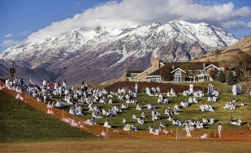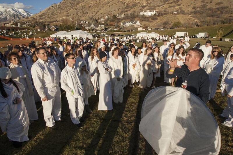 Dressed in white to play hundreds of angels, volunteers descended on Rock Canyon Park to claim the Guinness Book of World Records' title for largest live Nativity on Monday. Leading roles in the production were played by musicians, local TV favorites and YouTube stars, many of whom are widely known for their membership in the Church of Jesus Christ of Latter-day Saints.