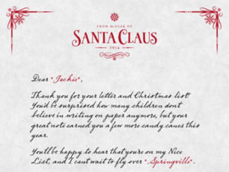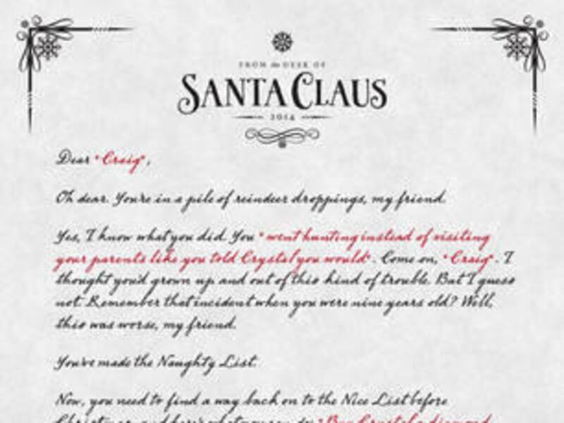 Letters from Santa to adults are also available, as well as black letters that warn the recipient of their possible place on the naughty list.