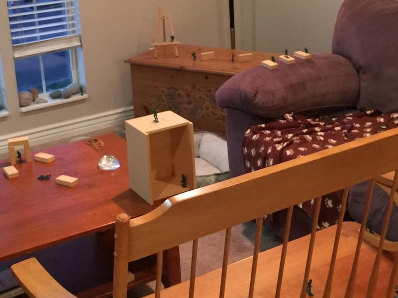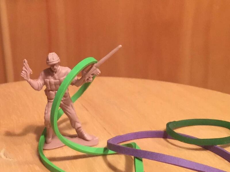 I am 58 years old and my son is 26 and yet for about three hours we were kids again. We had a full-scale, two-room battle that put literally hundreds of rubber bands into play. Plastic army men stood frozen on each side of the room, most of them secure in the knowledge that the odds of them actually being hit were minimal.
