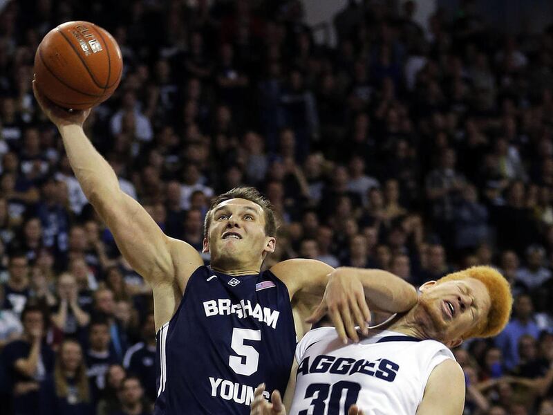 The Aggies (3-3) cut BYU’s lead into single digits several times, but the Cougars kept answering. With a little more than five minutes left, Haws drained a huge 3-pointer to put BYU up, 68-58.