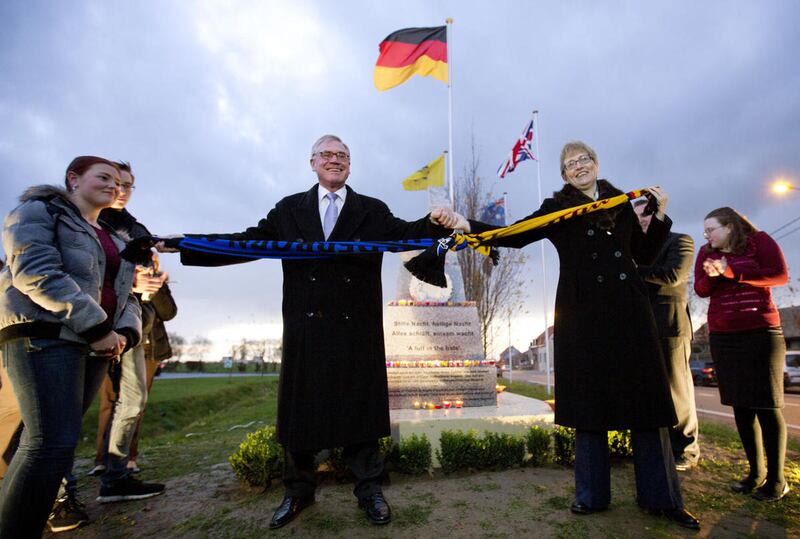 PLOEGSTEERT, Belgium — With British and German forces separated only by a no-man's land littered with fallen comrades, sounds of a German Christmas carol suddenly drifted across the frigid air: "Stille Nacht, Heilige Nacht" ("Silent Night, Holy Night").