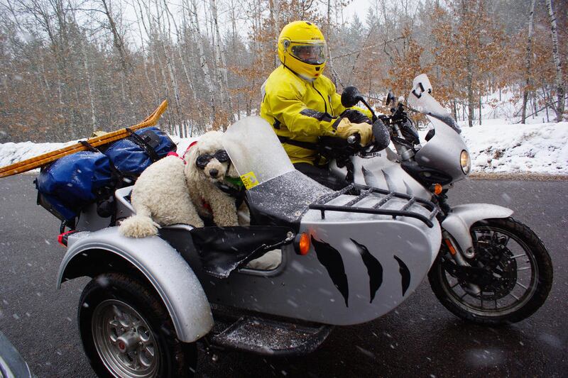 They started their travels when Roper got Bruce as a puppy and decided it would be fun to hit the road with his dog. So the mechanical design engineer took classes and bought a $14,000 customized motorcycle-sidecar.