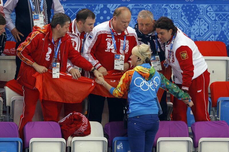 Sochi organizers said they considered the matter closed and planned no further investigation because the men took down the banner when asked. They declined an interview with The Associated Press.