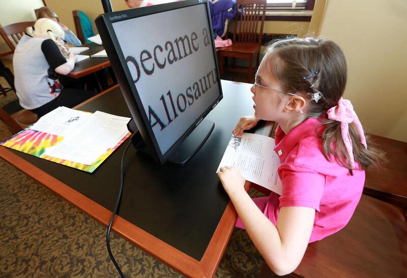 Bethy Decaria, 9, started school with her neighborhood peers, but her sight has continued to get worse to the point that she now must use a video magnifier to read passages from her third-grade books. She's bright, and her teachers say she can sound out any word she comes up against, as long as it is big enough to see.