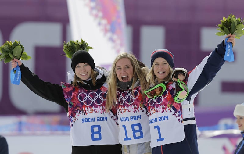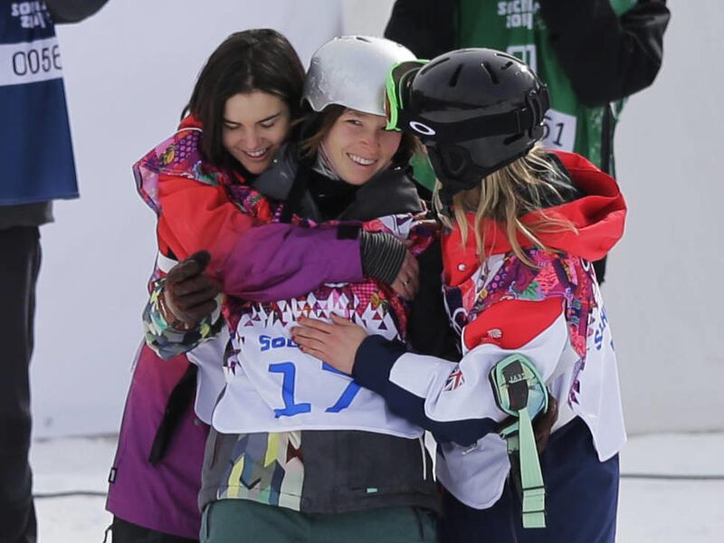 ROSA KHUTOR, Russia — The women of the world exchanged hugs and encouragement at the start and the finish of the Olympic slopestyle course in Sochi Sunday afternoon.