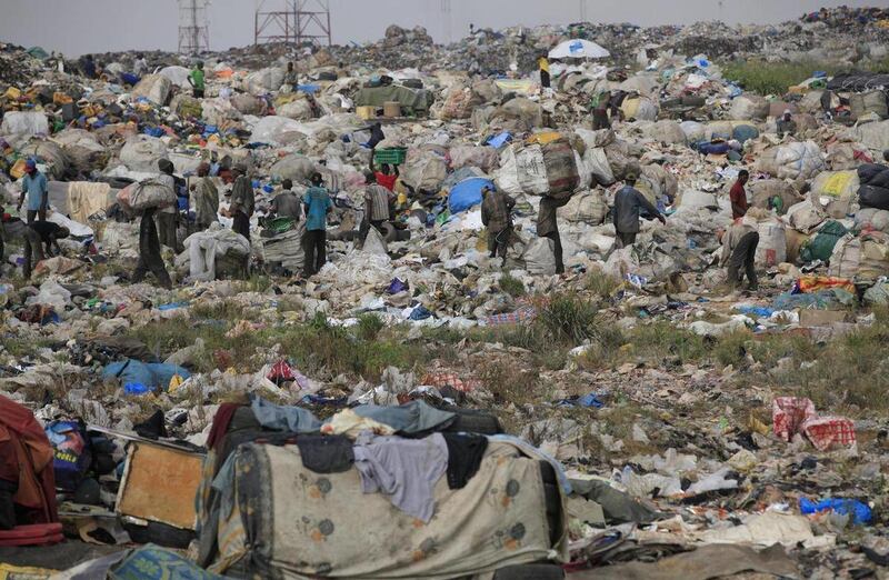 "We go through the scraps and look for shoes, iron, plastic which we sort and sell it to companies," said Samuel Jatel, 29, who said he provides for his wife and 3-year-old child. On the job for four years, he said he can make a maximum amount of 5,000 naira ($30) per day.